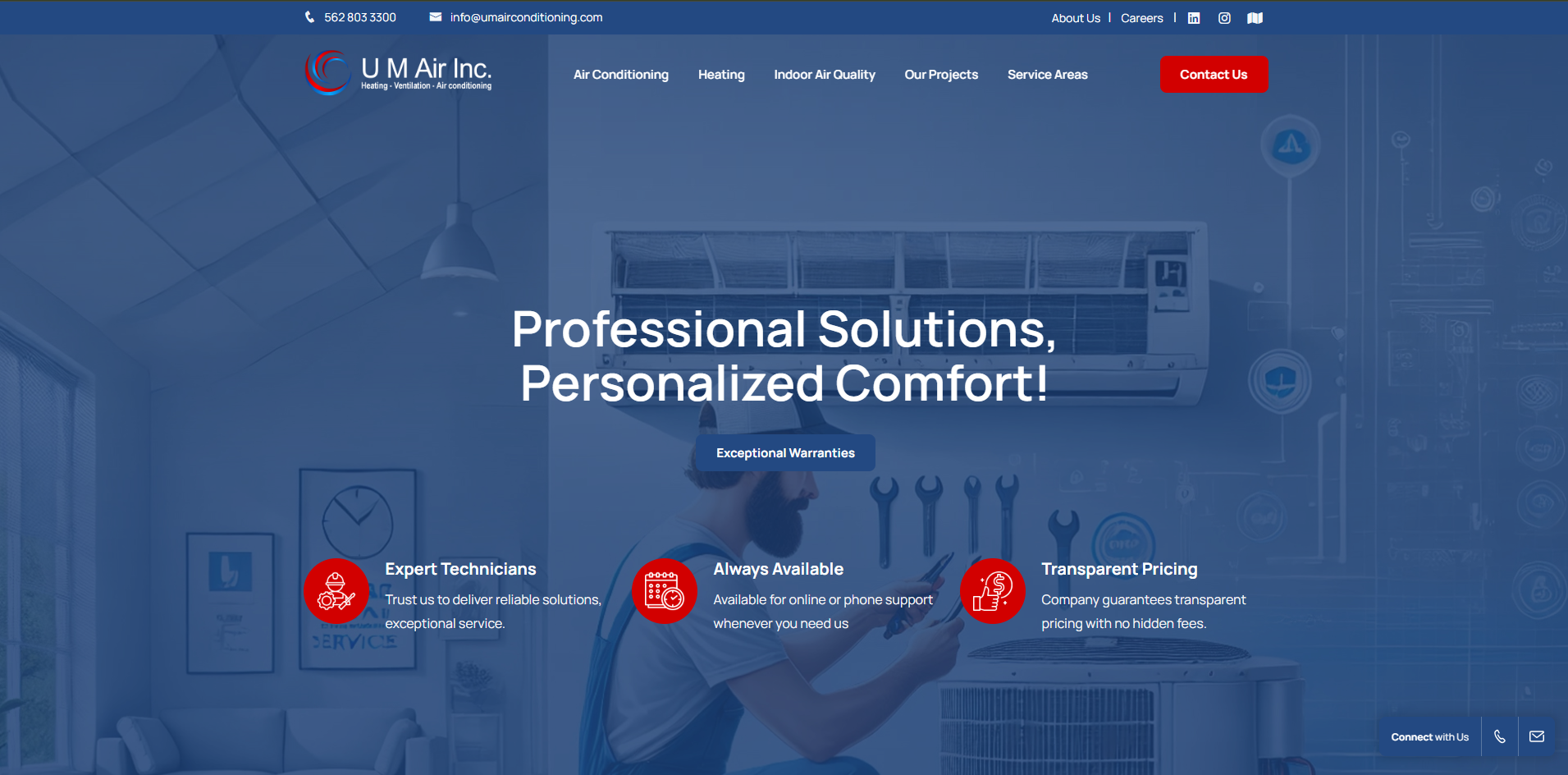 Umair Conditioning is an online presence for a leading air conditioning and HVAC solutions provider aimed at delivering comfort, quality service, and reliable information to its customers. For this project, our agency was responsible for the complete UI/UX design and website development from concept to launch.