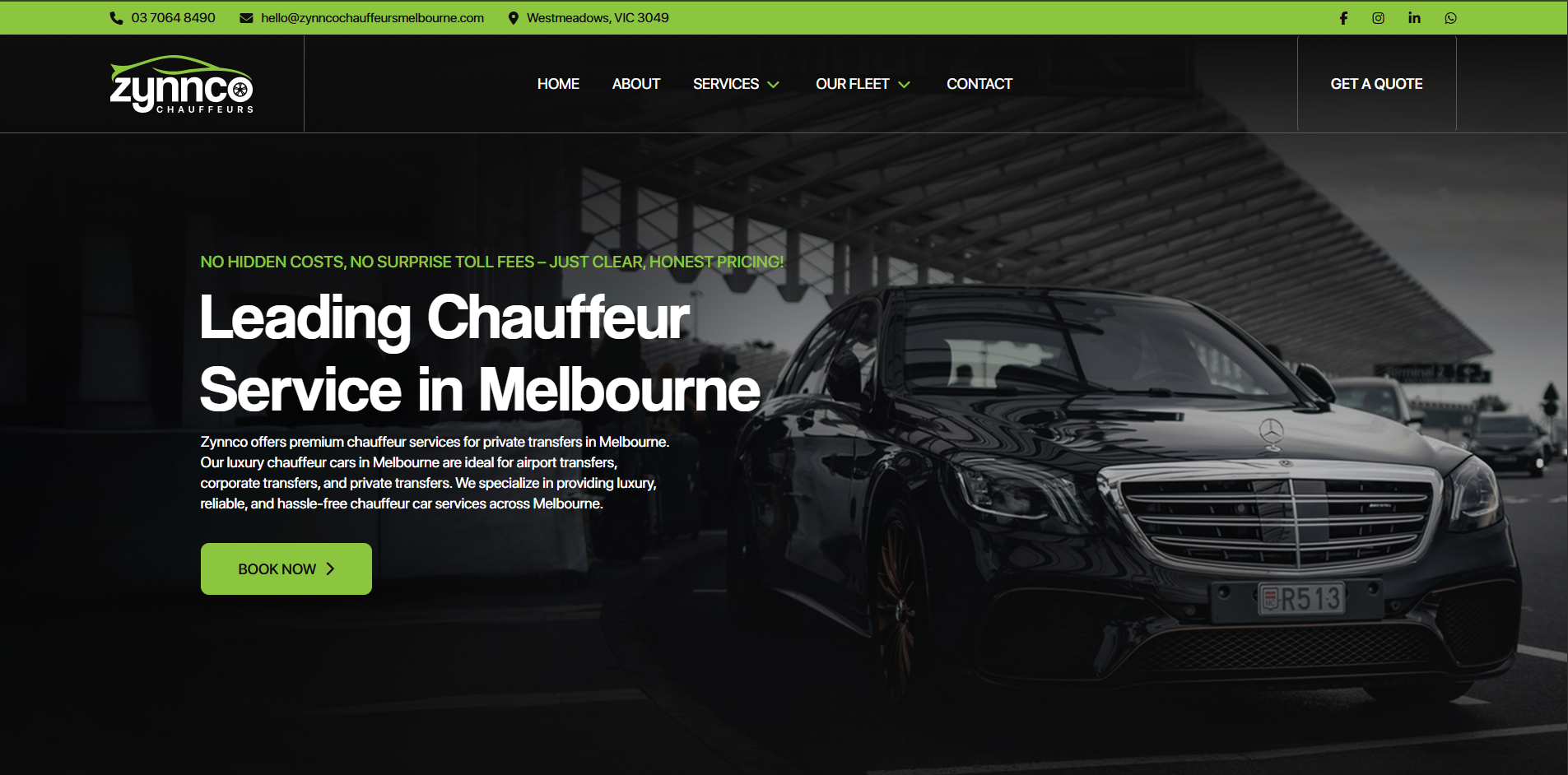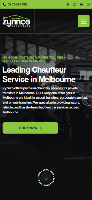 Zynnco offers premium chauffeur services for private transfers in Melbourne.