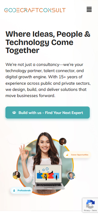 The website was then developed to bring the brand and design to life online, with a fully responsive and performance-optimized structure that highlights CodeCraft Consult’s services, value proposition, and technology insights. The result is a cohesive digital presence that aligns with the client’s goals and resonates with their target audience.